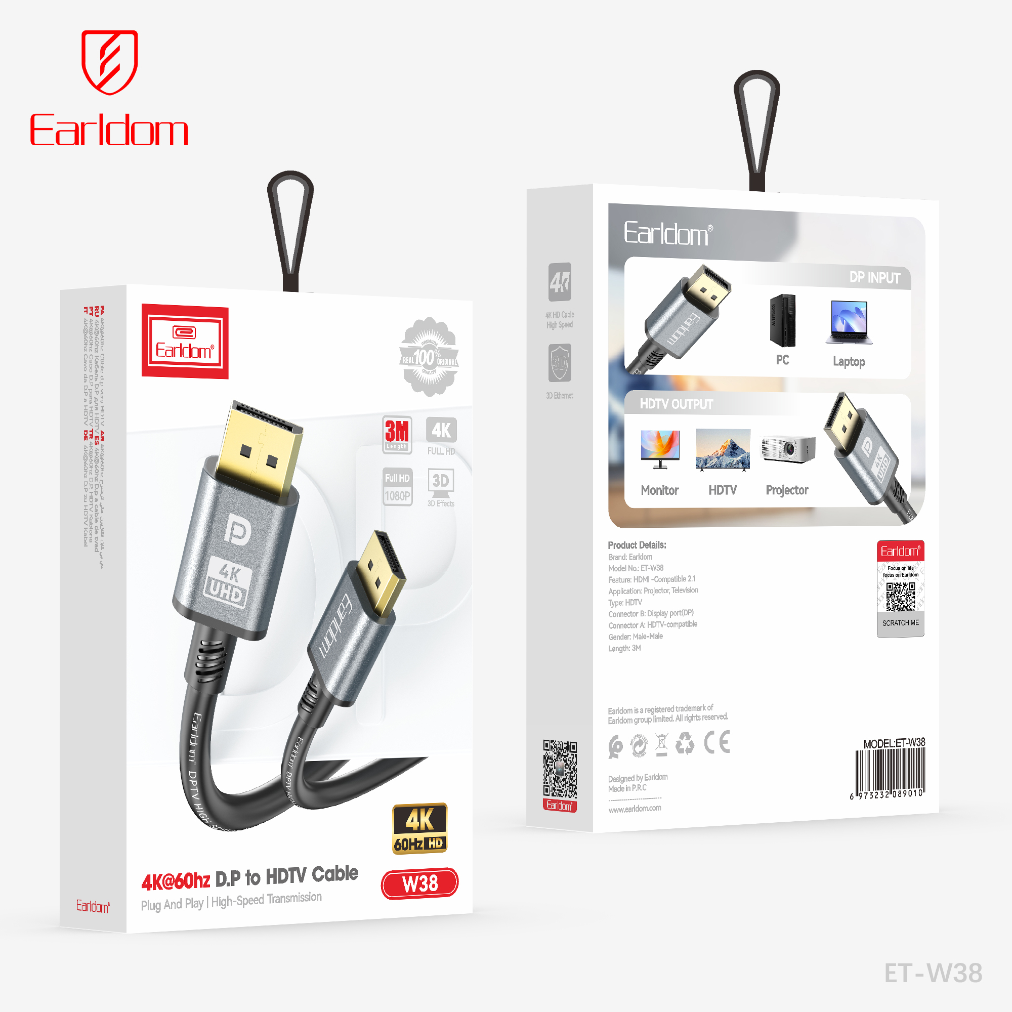 The Earldom ET-W38 2m Display Port Cable ensures stable connectivity and reliable performance for your devices. Built with durable materials for long-lasting use, it’s ideal for home, office, or professional setups.